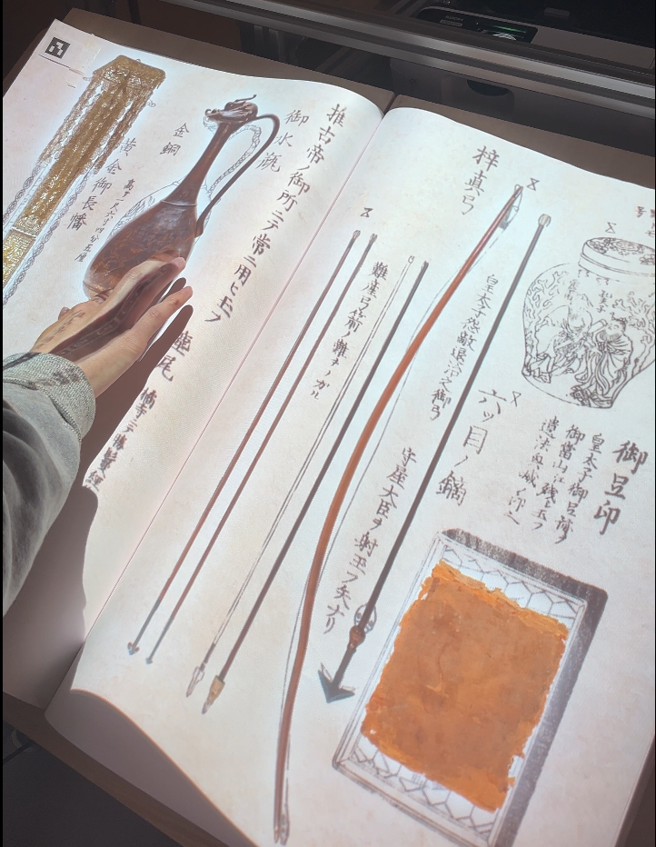 〈めくってみよう「御宝物図絵」〉は、東京国立博物館で初めて導入される、本のかたちをしたインタラクティブコンテンツです。ブック型デジタルコンテンツは、日本では博物館での導入例が極めて少なく、博物館における新たな文化財の楽しみ方を提案するものです。
