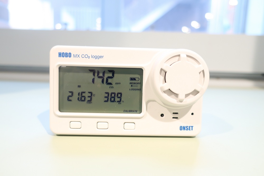 その上で、講師と参加者の間のアクリル板の設置、マイクなどのこまめな消毒、換気扇やサーキュレータの常時稼働による換気などを行ないました。換気量については、二酸化炭素濃度1000ppm以下を保つことがひとつの指標とされていたので、リアルタイム計測による確認を行ないました。夏や冬の開催では、室温にも気を配る必要がありましたが、幸いにも二酸化炭素濃度が1000ppmを超えることはないことが分かり、安堵したことを覚えています。