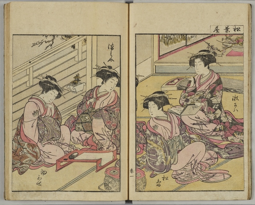 「青楼美人合姿鏡」(部分)、北尾重政・勝川春章筆、江戸時代・安永5年(1776)、彩色摺絵本、東京国立博物館