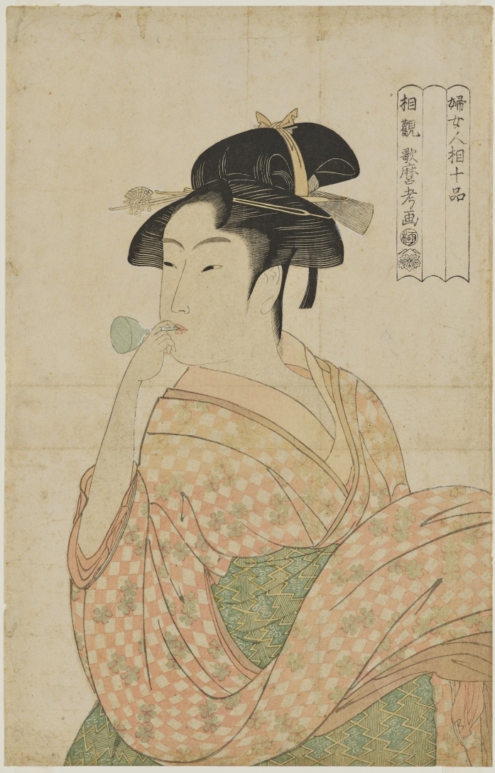 「婦女人相十品・ポッピンを吹く娘」、喜多川歌麿筆、江戸時代・18世紀、大判錦絵、東京国立博物館
