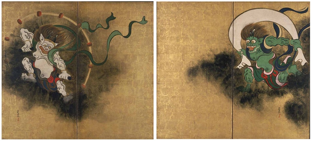 重要文化財「風神雷神図屛風」、尾形光琳筆、江戸時代・18世紀、紙本金地着色、東京国立博物館